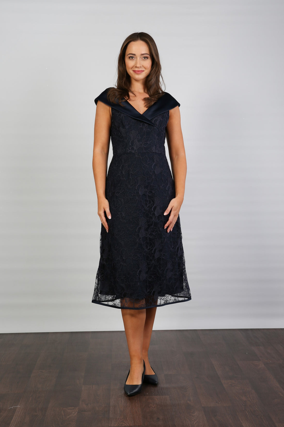 Mika 'Edge of the Shoulder' Satin and Lace Occasion Dress- Regular price