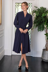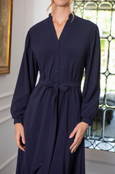 Alexis Front Fastening Dress with Sleeves in Dark Navy