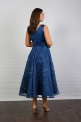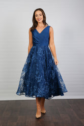 Bella Satin Embroidery Special Occasion Dress in Oxford Blue