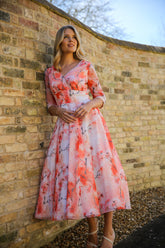 Blossom Chiffon Occasion Dress with Sleeves