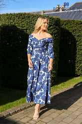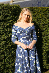 Bombshell Georgia Edge of the Shoulder A-line Dress in Navy Roses