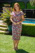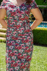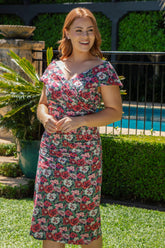 The perfect Bombshell print for summer events, Poppy Amelie combines romantic reds and pinks printed on a navy base, beautiful for mother of the bride or groom, or your next garden party.