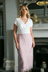 Featuring soft scuba jersey with figure flattering pleats and a lovely contemporary embroidery over the contrast navy skirt, you will be both stylish and comfortable in the Brooke dress. Cut to a midi length approx. 30" waist to hem.
