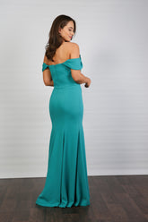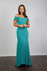 Cadenza Full Length Off the Shoulder Dress in Turquoise