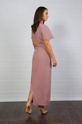 Cassandra Crease Resistant Ankle Length Dress in Dusty Rose
