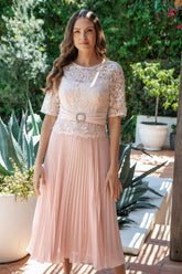 Richly embroidered lace and sheer sleeves are perfectly complimented with a classic pleated georgette skirt, style 81003 by Condici. The stunning diamante buckle at the waist and matching jacket, combine to bring you a delightful silhouette for the most special of occasions. Matching Condici hat style CDF2205 completes this wonderful outfit.
