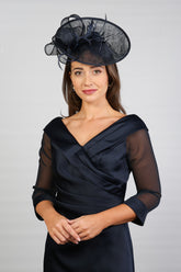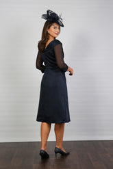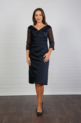Crystal Pleated Satin Special Occasion Dress in Dark Navy