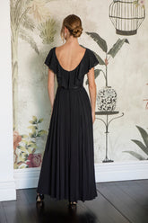 Your perfect evening dress with flutter sleeves, full and flowing to dance the night away. Designed in soft crepe fabric with a delicate satin waistband.