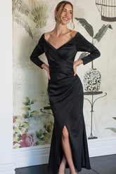 Elle Off the Shoulder Stretch Jersey Long Dress in Jet Black