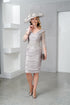 Ispirato Embroidered Sleeve Ruched Taffeta Dress in Taupe