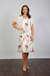 Look and feel incredible in this gorgeous floral dress with stunning multicoloured embroidered flower design and feminine chiffon sleeves. Comfortable, cool and uniquely beautiful for all your summer events.