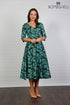 This midi length dress comes in a beautiful stretch cotton fabric featuring sea green watercolour roses. It's perfect for formal occasions and would be a stunning Mother of the Bride or Groom Dress, or look fabulous worn to Goodwood Revival.