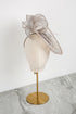 An asymmetrical fascinator with twists of sinamay above and below the sinamay base. Delicate matching feathers add extra detail to this traditional accessory. A wonderful fascinator for any wedding, special event, or a day at the races.