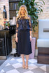 Irina Silky Twill Embroidered Dress in Dark Navy