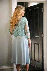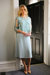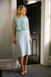 Irina Silky Twill Embroidered Dress in Duck Egg