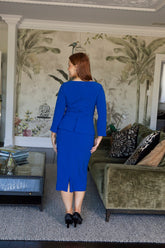 Judith Moss Crepe Dress with Sleeves in Electric Blue