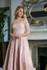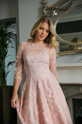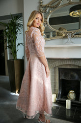 Marilyn Luxe Satin Embroidery Occasion Dress in Seashell