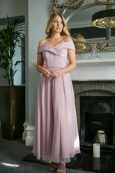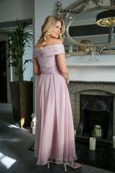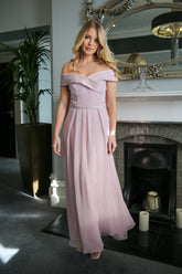 Niki 'Off the Shoulder' Floaty Chiffon Dress in Blush
