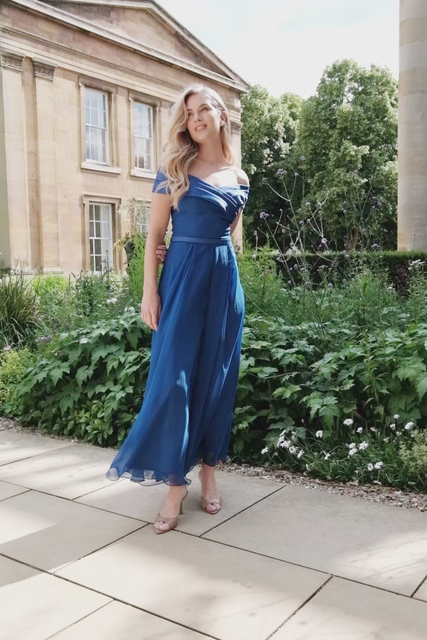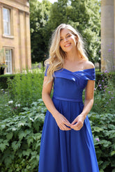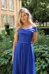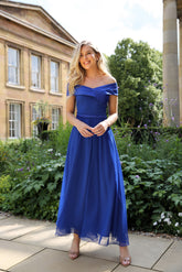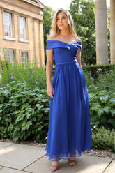 Niki 'Off the Shoulder' Floaty Chiffon Dress in Electric Blue