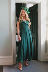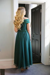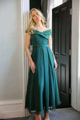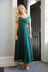 Niki 'Off the Shoulder' Floaty Chiffon Dress in Juniper