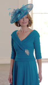 Edge of the shoulder dress with signature pleated bodice, sleeves and collar by Condici style 71108 in gorgeous Alcedo.