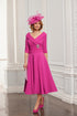 Edge of the shoulder dress with signature pleated bodice, sleeves and collar by Condici style 71108 in Raspberry Spritz.