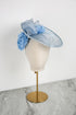 Fabulous sinamay fascinator with hand made silk flowers both above and below the brim. Twists of sinamay and delicate feathers enhance the beautiful asymmetrical shape, a very special fascinator for all your special events.