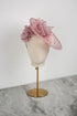 Fabulous sinamay fascinator with hand made silk flowers both above and below the brim.  Twists of sinamay and delicate feathers enhance the beautiful asymmetrical shape, a very special fascinator for all your special events.