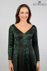 Bombshell Sears Sleek & Sweet Long Sleeve Dress in Green Leopard