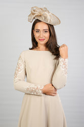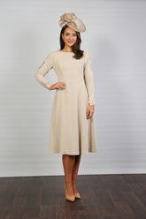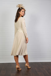 A beautifully formal long sleeved dress designed with silky twill fabric that drapes perfectly and has a touch of stretch to smooth and flatter your figure. Smooth embroidery detail at the waistline and sleeves elevate the simplicity of this special dress.